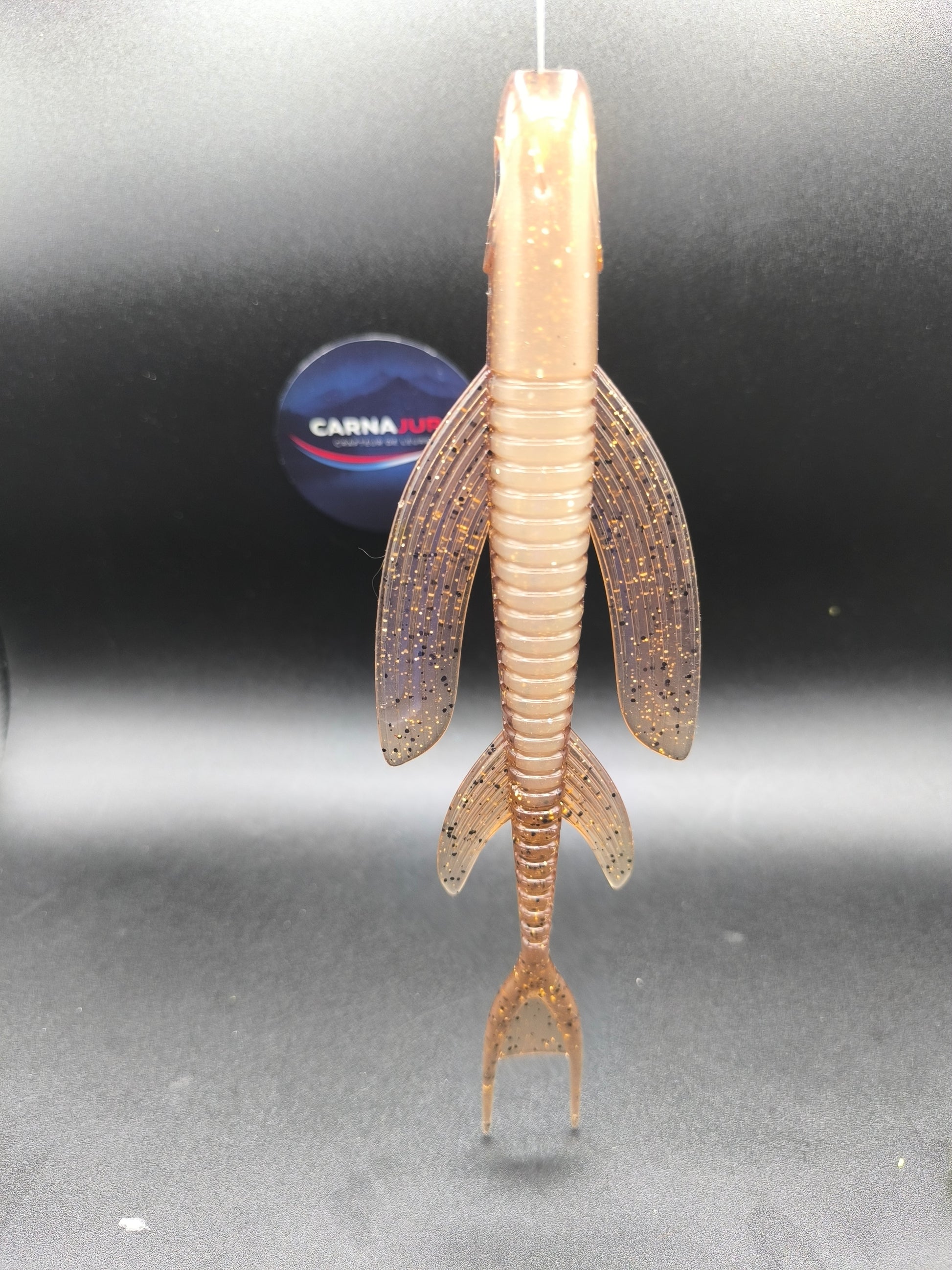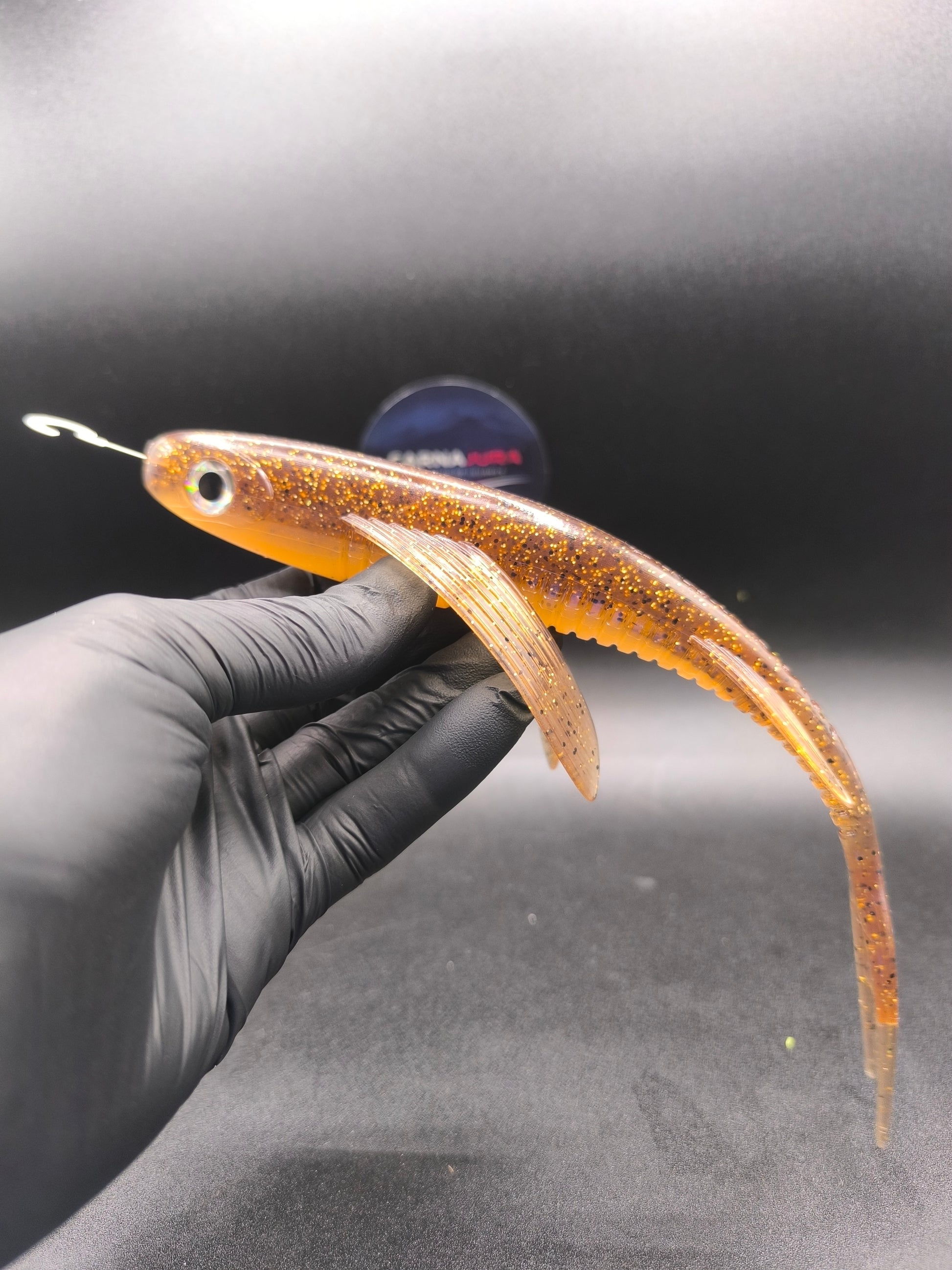 Un magnifique finesse filiforme avec de grandes voilures souples, une queue très fine en forme de V et un corp annelé . Sa conception et sa souplesse lui permettent de nager très lentement et à la moindre sollicitation il produit de grandes vibration , tout en étant très résistant. Il excelle en verticale et pélagique à distance.