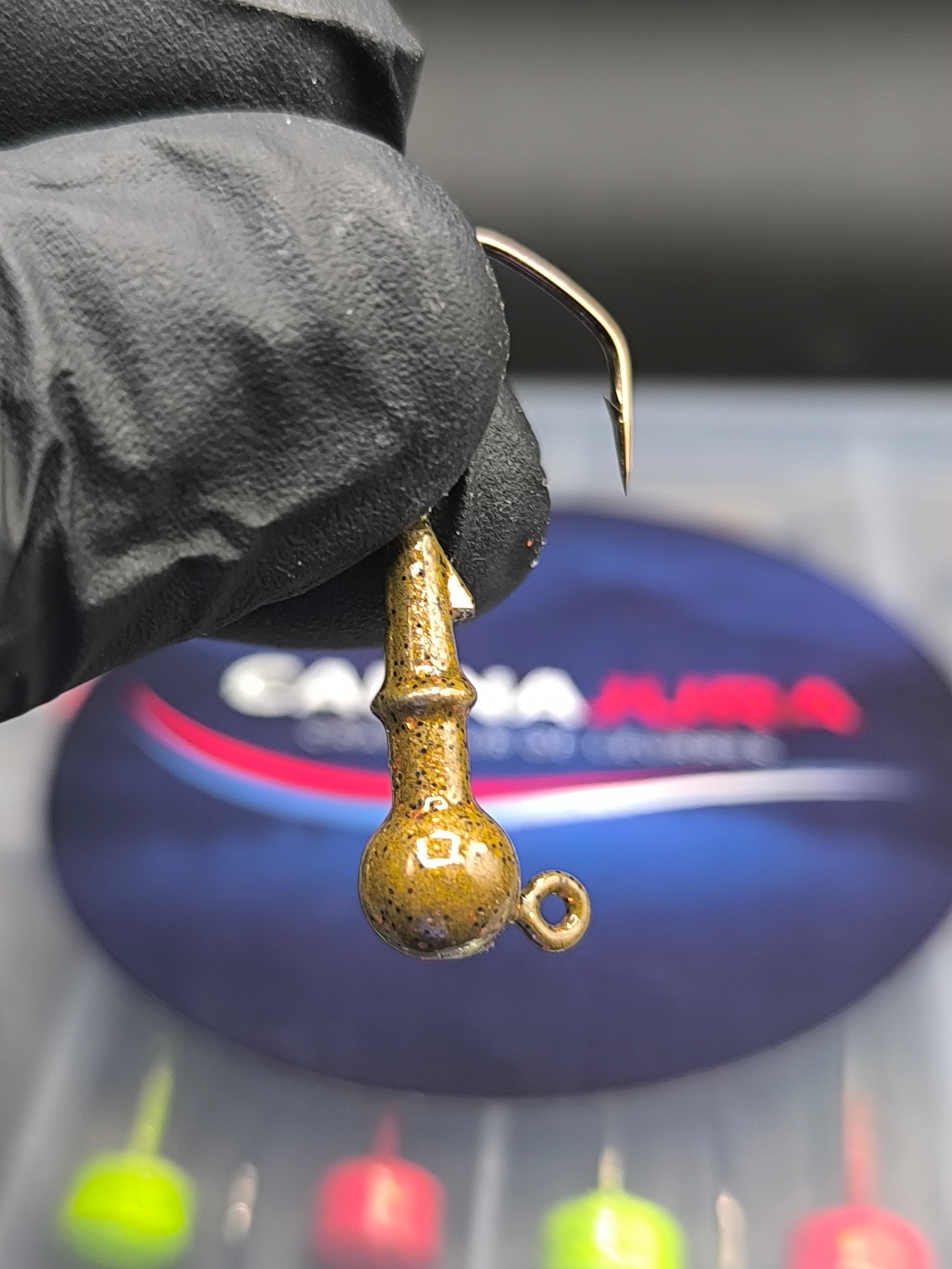 9 Têtes ronde 3 de 2.5g, 3 de 4g, 3 de 6g monté sur un hameçon VMC de 1/0.